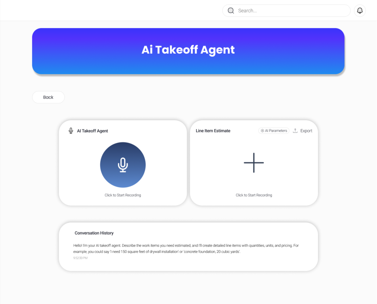 Our Ai Bid Assistant will talk with you to create take-off sheets and estimates with your company's parameters.